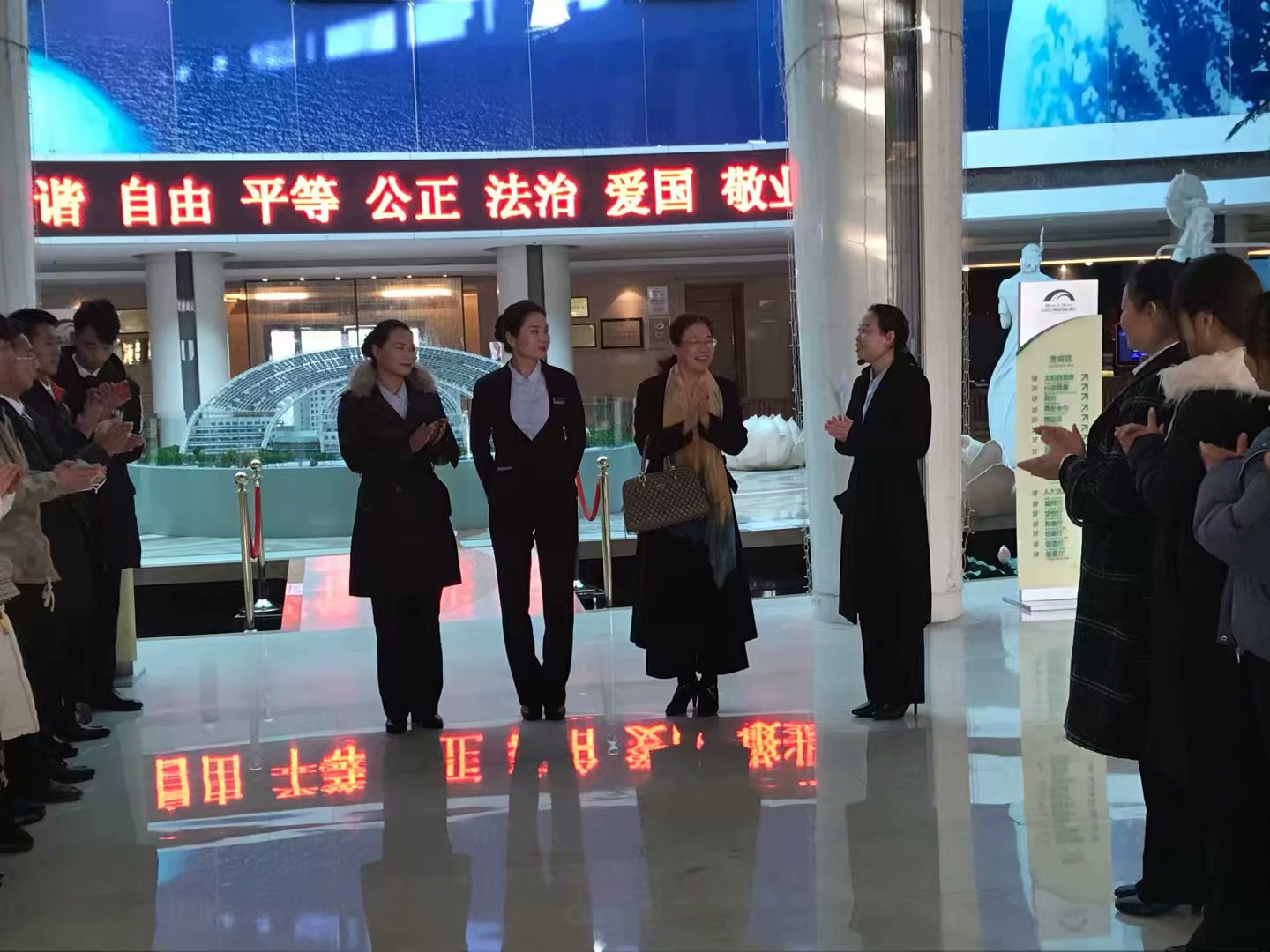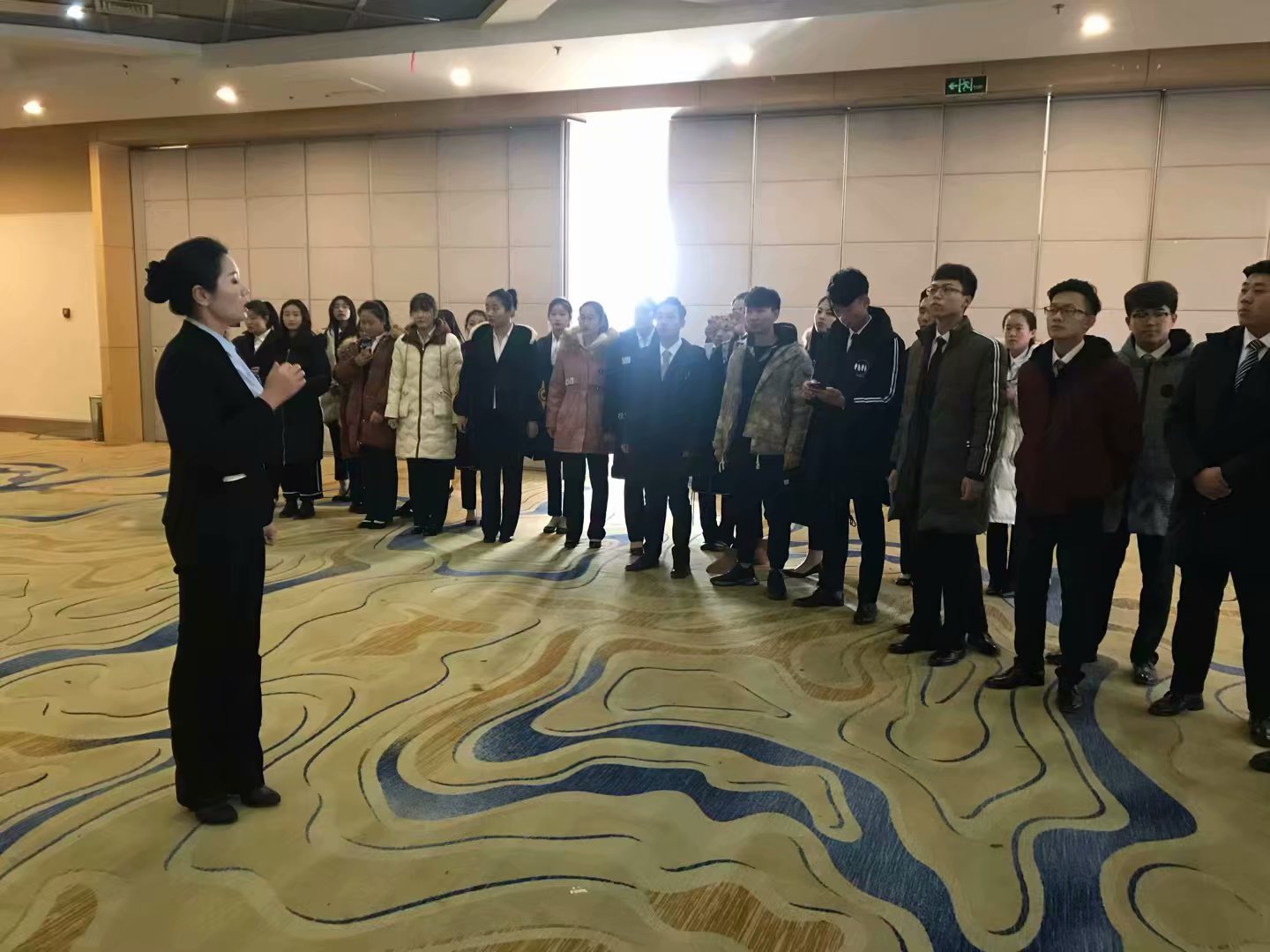 12月12日,我校2018级高职酒店管理两个班81名学生在教师夏莉、李新东、钱春霞的带领下,到我校校企合作单位德州太阳谷微排国际酒店参观学习。这是我校酒店管理专业大一学生第一次走进企业,实地了解专业,近距离观察岗位工作,听酒店人解读专业,感受专业魅力。