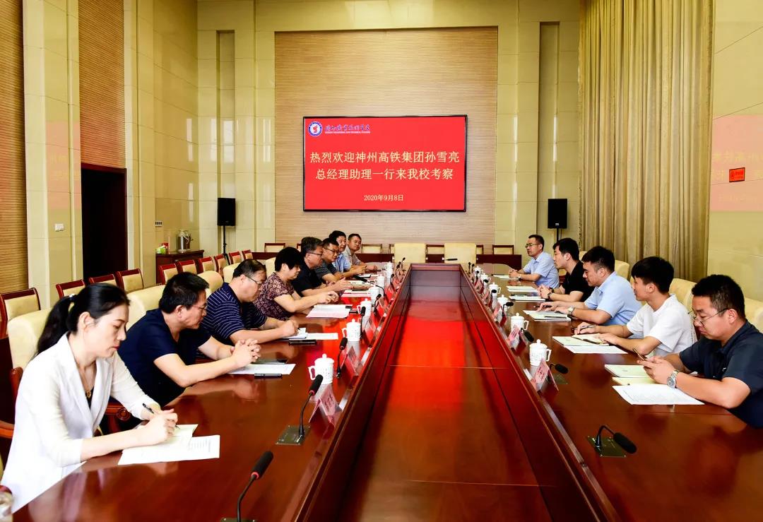孙雪亮对学校的热情招待表示感谢,他介绍了神州高铁的基本情况以及公司近几年取得的成绩和发展规划,高度评价了我校的办学实力和办学模式,对共同合作充满信心,期待与我校进一步加强沟通交流,创造合作机会,实现互利共赢。