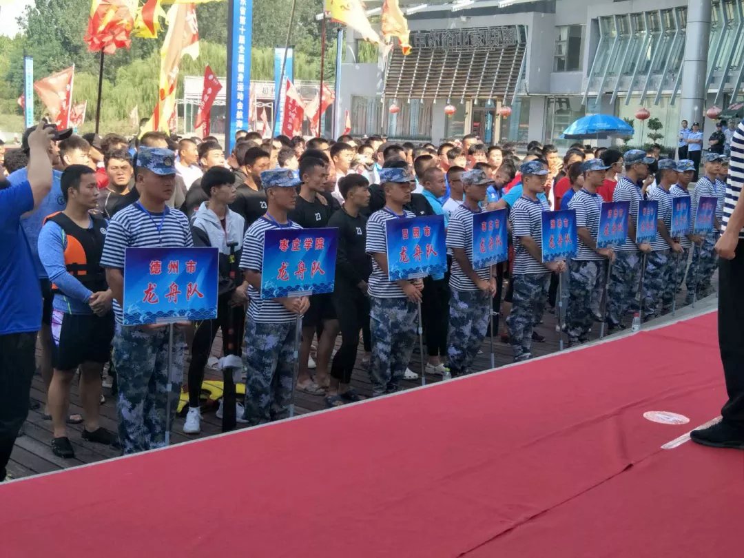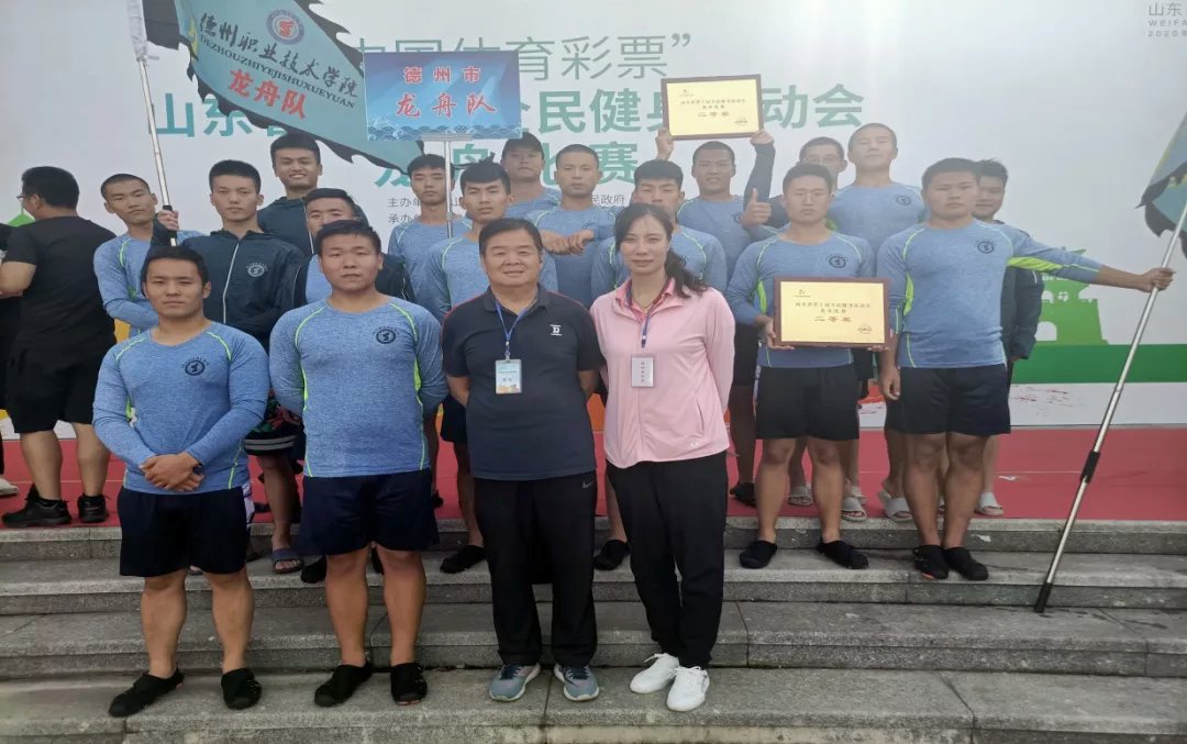 我校龙舟队受德州市体育局指派,代表德州市参赛,经过两天的激烈角逐,德职龙舟队在全省11支队伍近160名本科、高职院校学生运动员的比赛现场夺得200米、500米两个第三名,为我校赢得了荣誉,塑造了口碑,展现了德州市文明良好的城市形象。