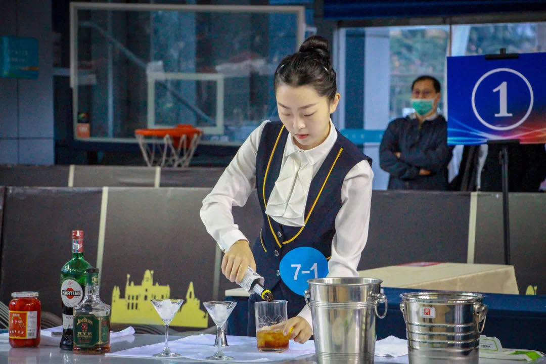 该赛项为今年国赛改革试点赛,比赛内容较往年有很大调整,分为中西餐两部分,中餐在宴会设计基础上,增加了水果制作和餐间服务,西餐内容调整为鸡尾酒调制、咖啡制作和休闲餐厅服务,尤其考察选手的英语口语能力。因青岛疫情影响,比赛准备时间有限,参赛队在没有任何比赛经验可借鉴的情况下,积极联系专家研究赛程,加班加点应对比赛,刻苦训练、不断总结,最终取得了满意的好成绩。
