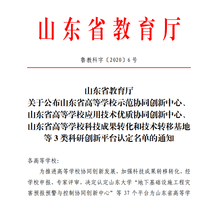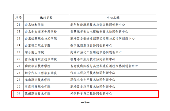 日前,山东省教育厅发布了《关于公布山东省高等学校示范协同创新中心、山东省高等学校应用技术优质协同创新中心、山东省高等学校科技成果转化和技术转移基地等3类科研创新平台认定名单的通知》,我校“光伏科学与工程协同创新中心”获评山东省高等学校应用技术优质协同创新中心。