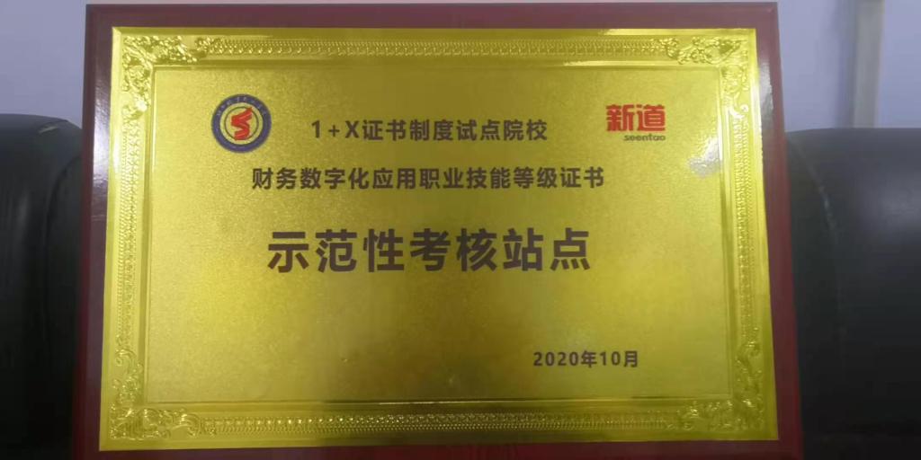 近日,“1+X财务数字化应用职业技能等级证书”评价机构新道科技股份有限公司向我校授予全国“示范性考核站点”荣誉牌匾,祝贺我校在2020年度1+X证书项目实施工作中成绩斐然。