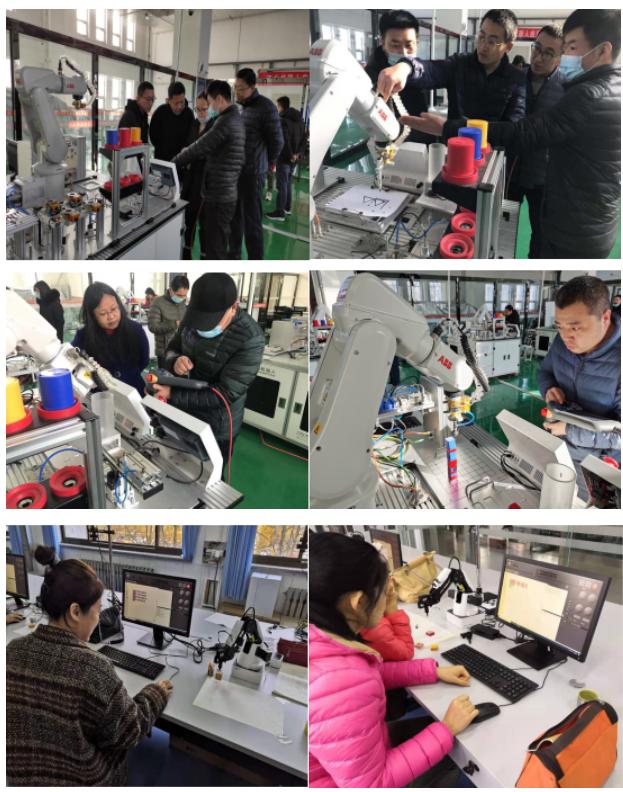 各位主讲老师为本次培训准备了丰富的授课内容,不仅从概念、定位、应用等方面深入浅出地为大家讲授了人工智能、智能控制技术知识,还通过带领大家利用智能机器人实现写字绘图、定点码垛等任务来感受人工智能、智能控制技术的魅力。