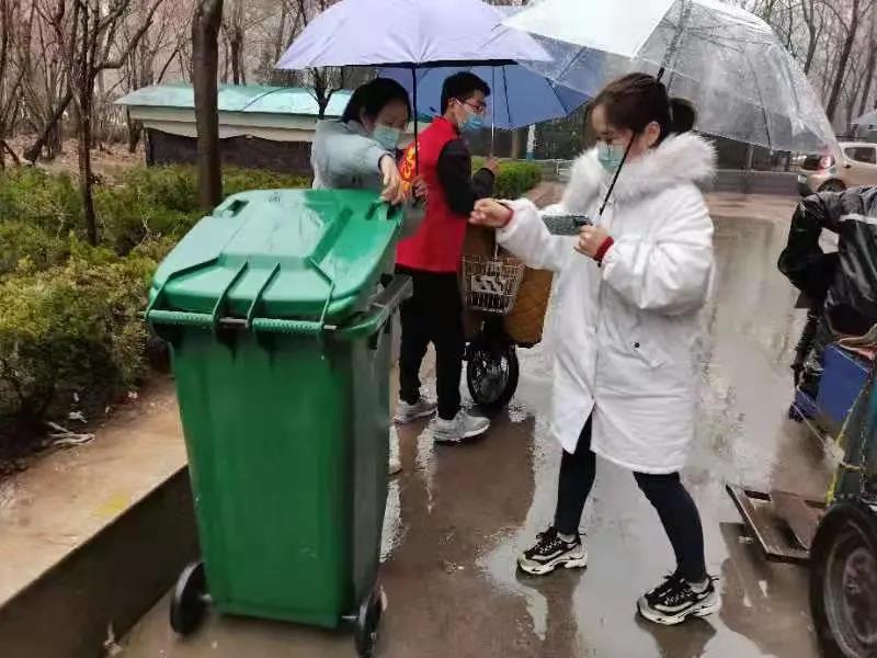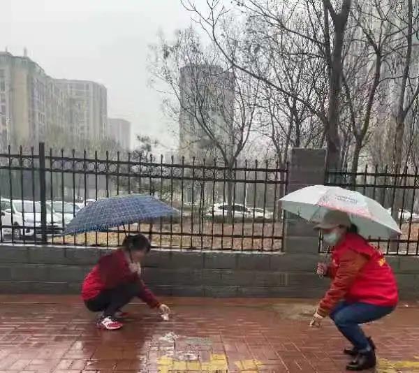 2月28日下午,德州职业技术学院基础部党支部教职工志愿者在雨中,到盛世华园小区开展文明实践活动。