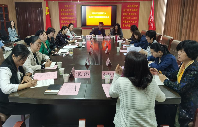 5月12日,德州市各界妇女新时代家庭婚姻座谈会在德州职业技术学院润德楼四楼会议室召开。市妇联党组成员、副主席周美清,市政协常委、德州职业技术学院副院长、民盟德州市委副主委张苹,德州明芳心理健康研究中心主任韩明芳出席会议并作重要讲话。德州市妇联、德州市民政局、德州民盟、我校学前教育与社会服务系相关负责人及教师参加会议。校党委委员、工会主席周爱红主持。