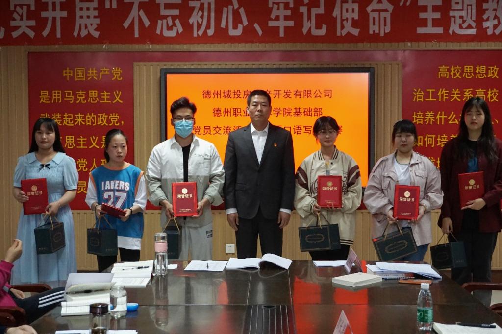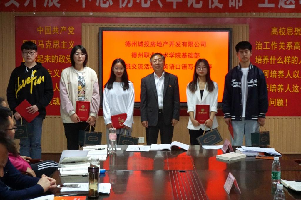 竞赛最后,德州城投房地产开发有限公司党支部书记、总经理刘永强同志以及德州城投房地产开发有限公司副总经理薛玉收同志为获奖学生颁发荣誉证书和奖品,并与同学们合影留念。