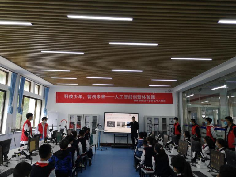 为进一步加强德州职院与中小学研学实践合作交流,切实为中小学生研学提供优质服务,5月16日上午,电气工程系迎来建设街小学五年级优秀学生,体验人工智能创新课程。