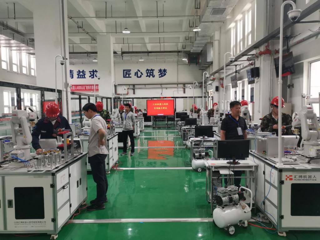为推进技能人才多元化评价机制改革,提高职业技能培训的针对性和实效性,助力德州市新型工业化强市建设,为我市“541”产业体系智能装备等产业链储备技术技能人才,市人社局首场“机器人码垛”专项职业能力考试于5月23日在德州职院工业机器人实训考核基地举行,151人考生参加了此次考试。