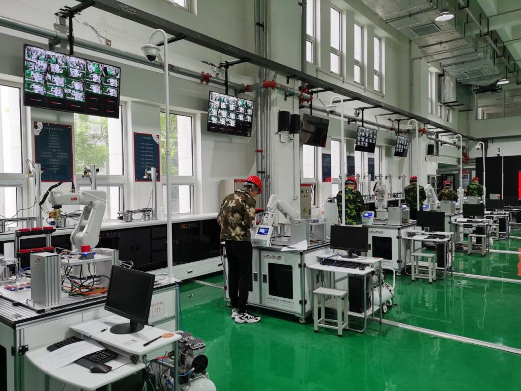 德州职院电气工程系把此次考试作为“德州市2021年职教活动周”的重要活动之一,精心筹划,严格把关。为确保考试工作顺利进行,系部制定了详细的培训和考务方案,组织学生进行实训操作技能强化练习并选派具有国家职业技能鉴定考评员资质的教师担任考评工作。考试以现场实际操作方式进行,主要考查考生是否可完成机器人的型号与夹具的合理选择并进行编程与调试,考察在实操过程符合工业生产安全标准前提下,控制机器人灵活连贯、快速高效、稳定精准的码垛作业能力。