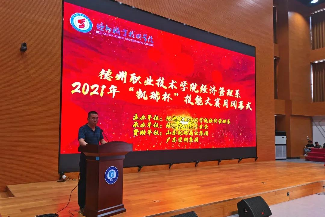 6月16日下午,德州职业技术学院经济管理系 “凯瑞杯”首届技能大赛闭幕式在公共实训中心多功能厅隆重举行。校党委委员、工会主席周爱红,党委委员、副院长殷淑英,经济管理系负责人、指导老师、获奖学生和教师观众共200多人参加了闭幕式。