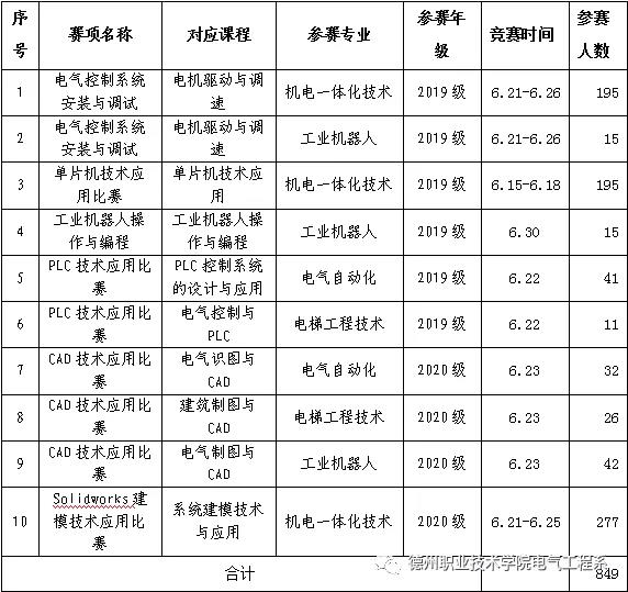 本次技能大赛活动,高职生参赛率达100%,创电气工程系技能大赛新高。赛项设置均与本学期课程相符,“以赛代考”成绩既用于人才培养方案技能大赛模块成绩的认定,也作为学期课程成绩的重要组成部分。“工业机器人操作与编程”赛项更是融入了1+X考核要求,对于实现“岗课赛证”综合育人具有促进作用。