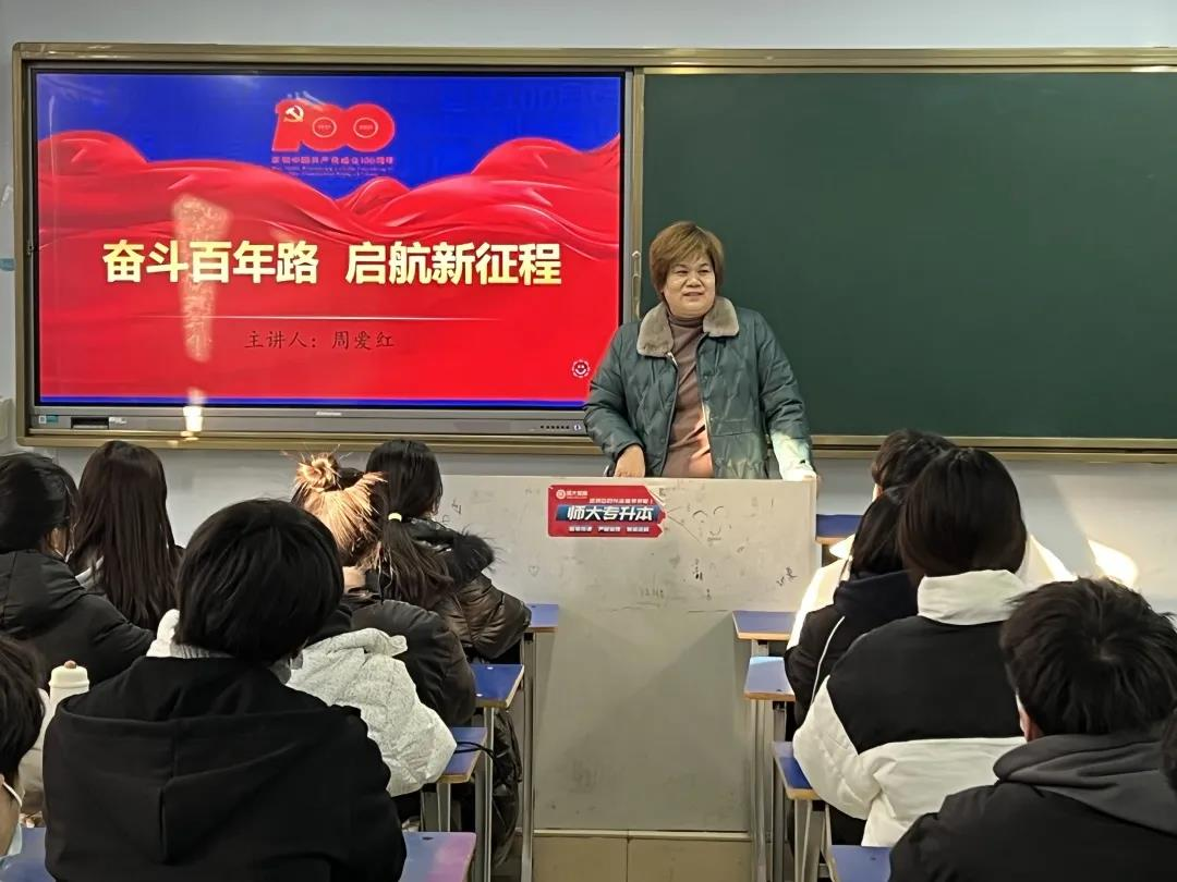 周爱红为学生们讲授了伟大建党精神、红船精神、井冈山精神、长征精神、延安精神、西柏坡精神、沂蒙精神等共产党人的精神谱系,重温了百年党史中发生的诸多感人事件,激发了同学们深入学习党史的热情,让学生们深刻理解党的百年历史就是一部践行党的初心使命的历史,就是一部党与人民心连心、同呼吸、共命运的历史。