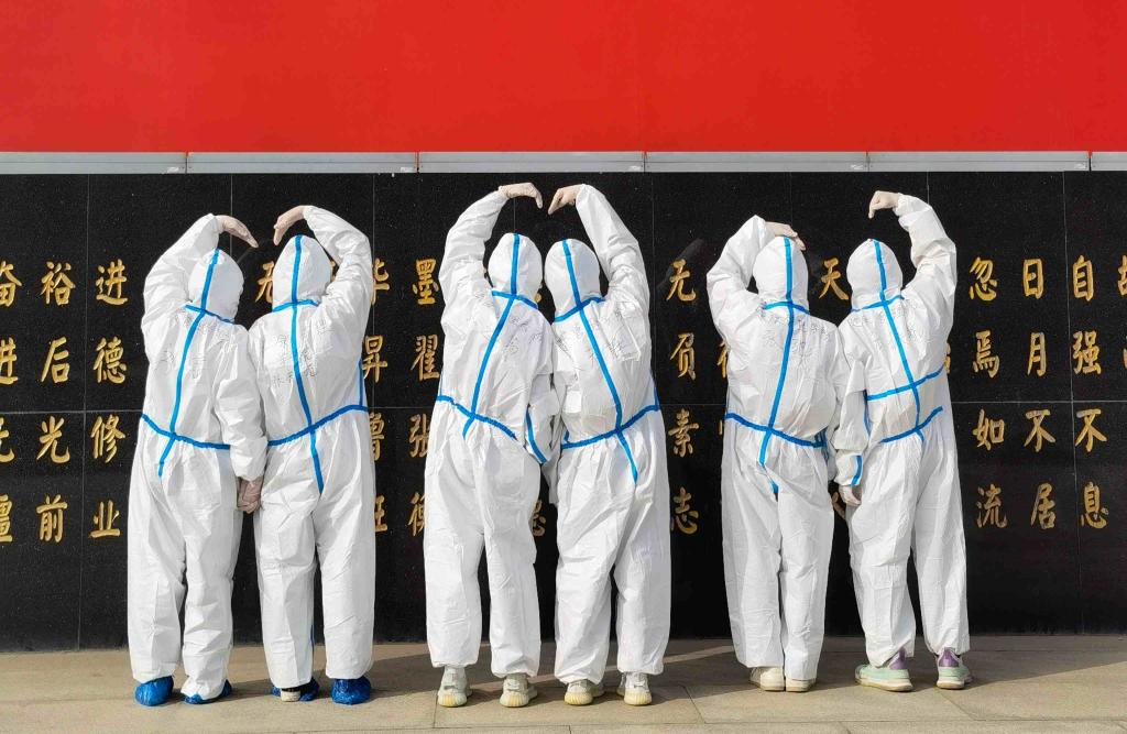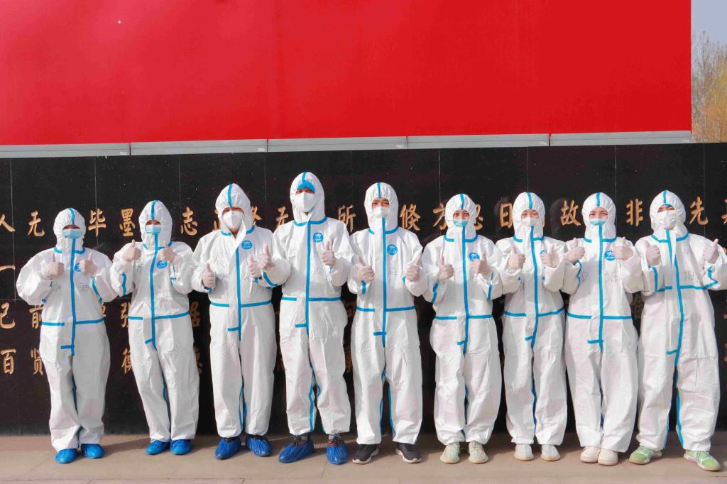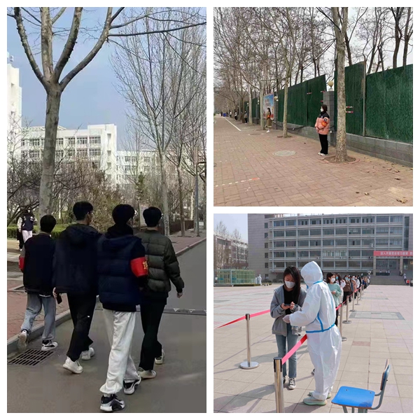 “大白”志愿者穿着防护服,戴着护目镜、口罩、橡胶手套,一整天全副武装,直到晚上九点才脱下整套防护装备,密不透风的防护服时常闷出一身汗。“红袖章”志愿者除帮助维持检测秩序外,还积极参与维持校园秩序,从早上八点到晚上十点准时在岗,对不佩戴口罩的同学进行提醒劝导,定时巡检校园安全,坚守岗位,尽职尽责。他们说,能参与疫情防控,能为老师和同学们做点事情,深感开心与自豪,不觉得苦和累,相信待到花开满园的时候,校园又会恢复往日的生机与活力。