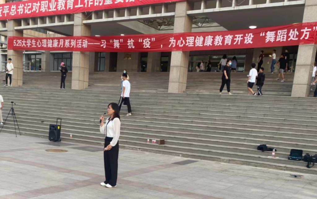 为缓解疫情期间我校学生出现的焦虑、恐慌、烦闷等负面情绪,做好心理安全防护,培养学生理性平和、积极向上的健康心态,5月25日晚,我校学生处组织了习“舞”抗“疫”,为心理健康教育开设“舞蹈处方”心理特色活动。