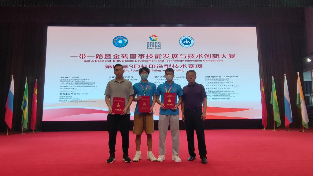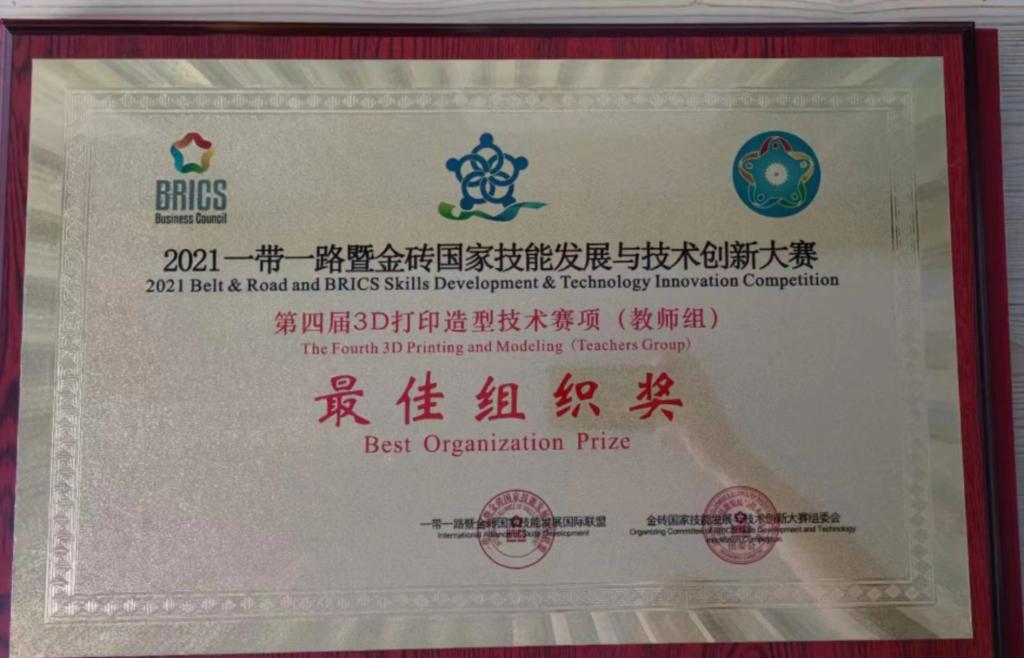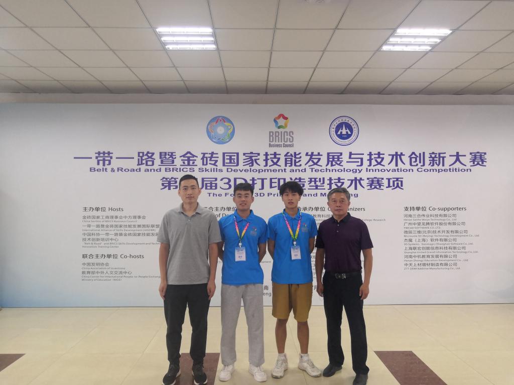 7月8日-10日,“一带一路”暨金砖国家技能发展与技术创新大赛第四届3D打印造型技术决赛在黄河水利职业技术学院举行,我校机械工程系派出1名教师、2名学生参赛。经过2天紧张激烈的技能比拼,最终高志凯老师荣获专项赛道金属3D打印组一等奖,学生李智昊、李健瑞荣获主赛道3D打印组优胜奖(指导教师高志凯、支保军),同时我校获得“最佳组织奖”称号。