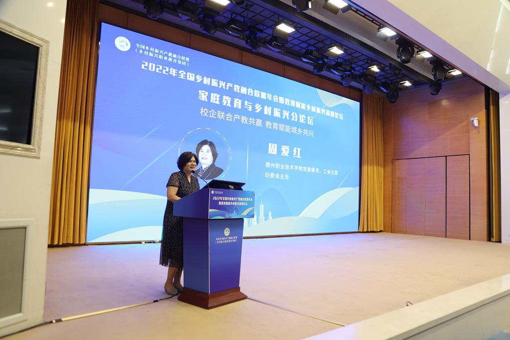 作为联盟副理事长单位,我校党委委员、工会主席周爱红在此次会议中以《校企联合产教共赢教育赋能城乡共兴》为题目,从学校概况、家庭教育落地实施、立足职业教育助力城乡发展三方面详细汇报了我校关于家庭教育助力乡村振兴的工作做法,得到与会人员的充分肯定。