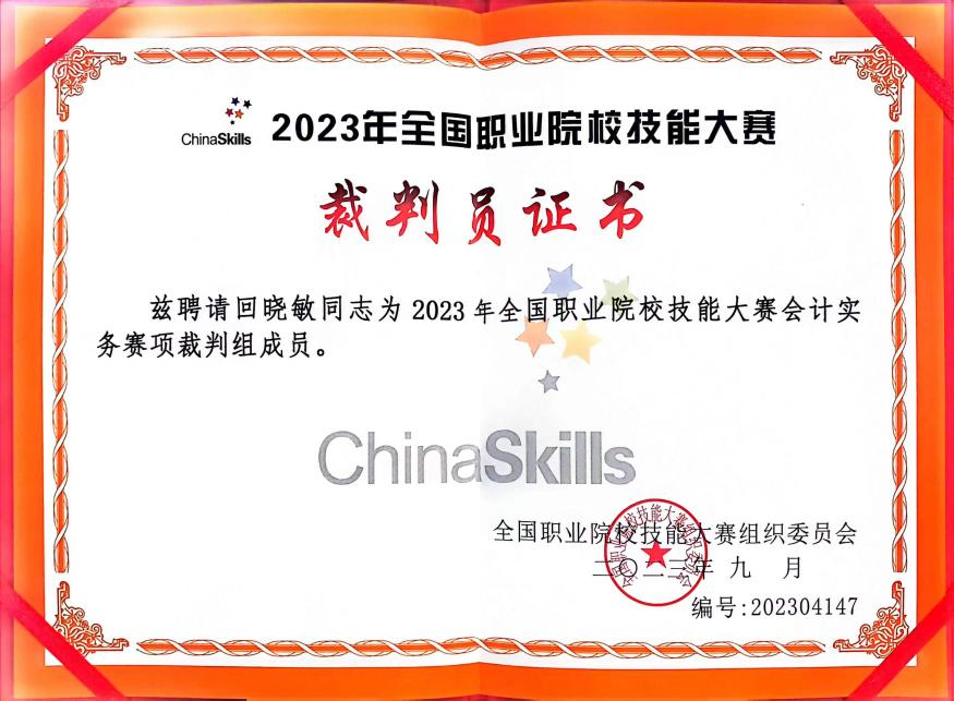 近日,全国职业院校技能大赛高职组“会计实务”赛项学生全国总决赛顺利举行。受大赛执委会邀请,我校经济管理系教授回晓敏担任该赛项裁判。