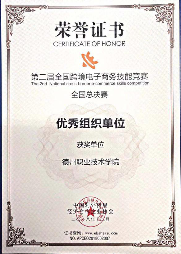 12月1日,由中国对外贸易经济合作企业协会主办的“第二届全国跨境电子商务技能竞赛”全国总决赛在江苏常州机电职业技术学院举行。我校计算机系学生方建雨、牛翔祺、王冬凡在指导教师陆晓翠、叶丽丽的带领下参赛。我校参赛选手经过一番紧张激烈的角逐,荣获大赛高职组一等奖的好成绩,我校获“优秀组织单位”称号。
