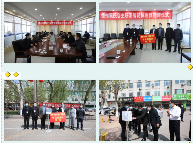 德州职业技术学院慰问派驻帮扶组,并向帮扶驻地政府和企业捐赠智能测温仪,是学校落实省委、市委“重点工作攻坚年”部署,面对新旧动能转换加速的新形势、新任务,履行大学责任,服务县域经济社会高质量发展的一个缩影。2019年,德州职业技术学院党委书记樊兆杰带领教授、专家、技术骨干,先后到禹城市、乐陵市、夏津县、庆云县、宁津县等对接政府和企业,找准了服务县域经济社会发展的重点搭建起多层次的校政、校企合作平台。学校召开了推进服务地方经济社会发展工作座谈会,出台《德州职业技术学院关于大力推进科研与技术服务工作助力地方经济社会发展的意见(试行)》,统一了思想,整合了资源,完善了激励措施,打造了优势。学校帮助企业研发了“温室栽培互联网智能控制系统”“面向医疗器械射频电刀肛肠治疗机器人关键技术的研究与实现”“DZGX-I型光纤器件测试设备”“无人值守换热站应用程序”“智能婴儿床”等项目,为企业转型升级和高质量发展提供了坚实保障。学校还为德州扒鸡集团、梁子黑陶、中椒英潮公司等地方知名企业开展品牌策划、电商营销等服务,为企业创造效益1.3亿元,为服务区域新旧动能转换、协同发展示范区建设贡献了“德职智慧”和“德职力量”。