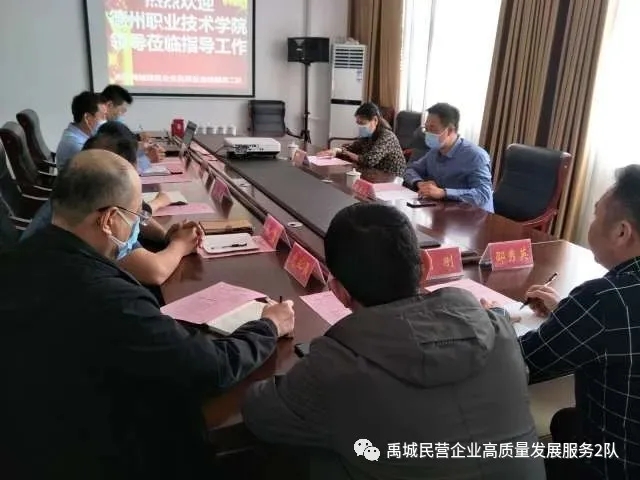 之后周爱红一行3人到德州市派禹城民营企业高质量发展服务二队开展调研活动。周爱红首先代表德州职业技术学院党委对学校驻禹干部表示慰问,听取了服务队党建工作和企业帮扶工作开展情况的汇报。她对服务队近一年取得的成绩给予了充分肯定,勉励他们发扬务实、踏实、严谨、认真的作风用心、用情为企业服务,利用学校的科研优势,积极探索应用技术型人才供需、企业员工培训、产学研结合等领域的创新方式方法,切实为企业解决实际问题。服务队表示将牢记学校嘱托,不辱使命,努力促成校企双方资源共享、优势互补,将学校的研究型技术和人才转化为企业实实在在的生产力。