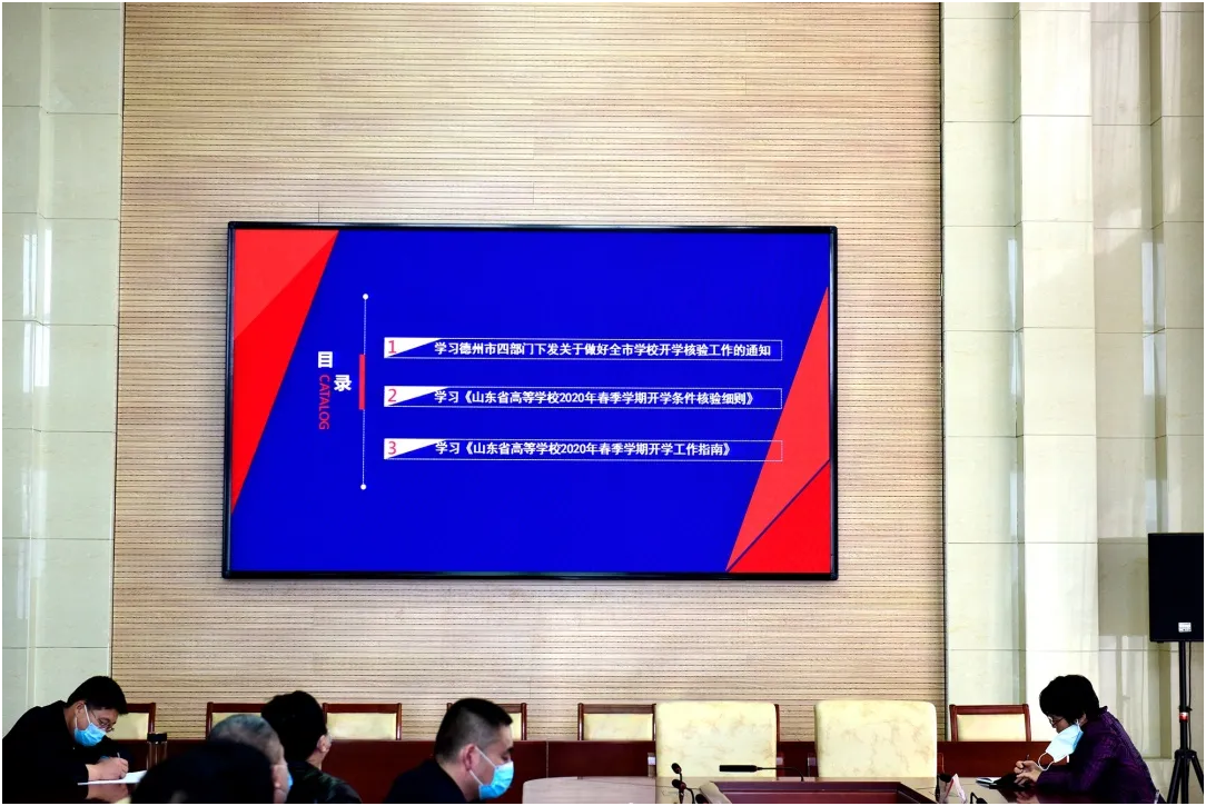 学校疫情防控工作办公室相关人员传达了德州市教体局等四部门联合下发的《关于做好全市学校开学核验工作的通知》,并对《山东省高等学校2020年春季学期开学条件核验细则》《山东省高等学校2020年春季学期开学工作指南》进行了讲解培训 。