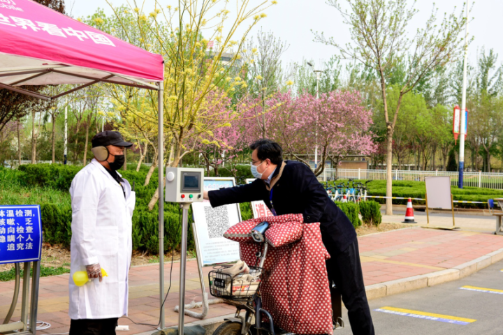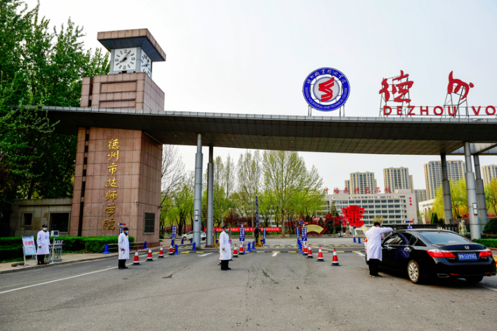 4月7日,德州职业技术学院全体教职工到校上班工作,学校严把入门关,所有教职工凭证进校园,进行体温测量。除教师继续网上教学外,其余人员做开学前的准备工作。