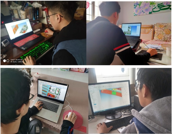 疫情的发生,让开学时间一推再推,但电气工程系本着“停课不停训”的原则,坚持组织学生训练。接到比赛通知后,系大赛工作小组安排闫洪猛老师组织“制造单元”竞赛梯队相关学生参赛。学生自学软件教程,练习软件的使用;闫洪猛老师定期组织学生交流、讨论,并开展一对一的线上指导。