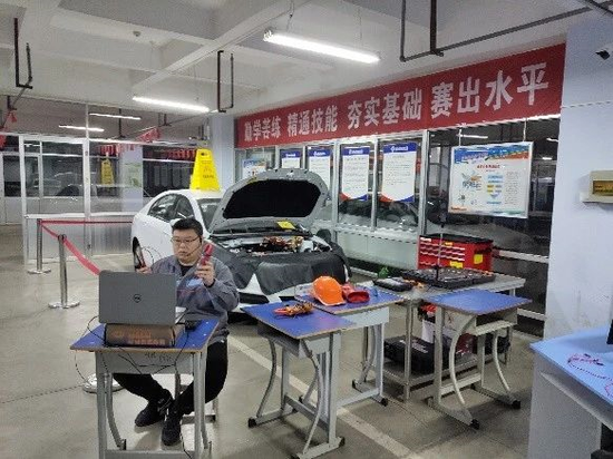 寇春欣一直是汽车工程系年轻教师的榜样,2019年他曾带领学生获得山东省职业院校技能大赛新能源汽车技术赛项一等奖。在他的带动下,汽车工程系其他几位专业课教师也纷纷来到实训室,在做好疫情防护保障自身安全的基础上,把汽车实训室“搬”到线上,为学生们作更直观更生动的讲解,停课不停教,创新网络授课方式,为疫情防控和省优质校建设贡献德职力量。