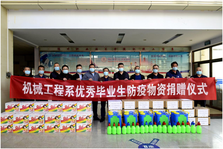 3月23日上午,德州职业技术学院机械工程系1995级毕业生侯爱军,2007级毕业生杨东凯、汪颜哲为支持母校最好疫情防控期间的春季学习复学工作,向母校捐赠防疫物资,德州职院陈章侠副院长,机械工程系党总支书记徐继勇、主任梁东明、党总支副书记魏传旺、系副主任支保军等负责人参加捐赠仪式。