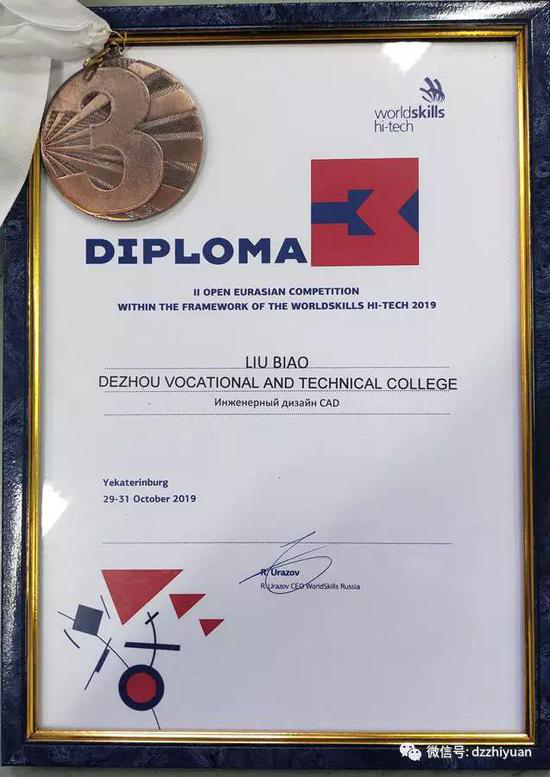 10月27 日至11月1日,第三届金砖国家技能发展与技术创新大赛暨欧亚高科技公开赛于俄罗斯叶卡捷琳堡举行,德州职业技术学院机械工程系团队喜获“机械设计CAD”赛项铜牌(第三名)。