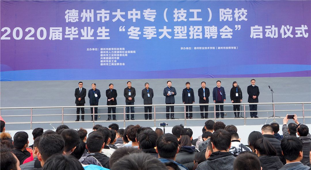 11月22日,德州市大中专(技工)学校2020届毕业生冬季招聘会在德州职业技术学院体育场举行。此次招聘会由市教育和体育局、市人力资源和社会保障局、市工业和信息化局、共青团德州市委、市总工会、市工商业联合会主办,德州职业技术学院承办。全市万余名大中专(技工)学校的学生参加招聘会,学生和企业招聘人员面对面交流、洽谈,寻找适合自己的工作岗位。来自德州及全国各地的近千家企业提供岗位三万余个,供毕业生选择。此次招聘会持续一周,部分企业将走进学校进行宣传推介。