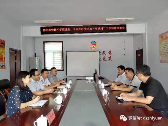 为贯彻落实德州市委组织部《关于机关企事业单位党组织、党员到社区报到工作有关事项的通知》要求,7月19日,德州职业技术学院党委副书记张恒斌代表学校党委与长河社区对接基层党组织和在职党员“双报到”工作,学校党委委员、宣传部长周吉星及党委组织部相关负责人员一同参加工作对接。长河街道办事处党委书记张伟忠和长河社区党支部书记杨宪琨、社区主任马俊强等参加对接。