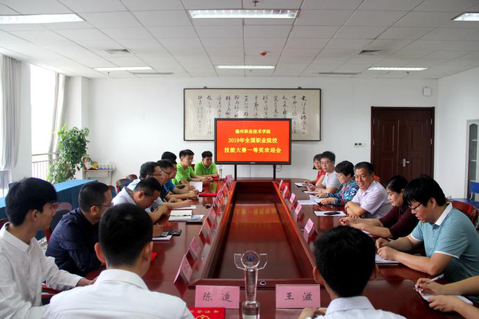 6月6日,德州职业技术学院召开2019年全国职业院校技能大赛一等奖欢迎会,副院长陈章侠,党委委员、组织部部长周爱红出席并讲话,教务处处长殷淑英主持会议。