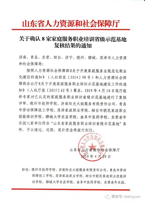 中国教育在线讯 4月29日,省人社厅印发通知,公布家庭服务职业培训省级示范基地复核结果,德州职业技术学院等8个单位榜上有名,每家上榜单位将获省财政奖补资金50万元。