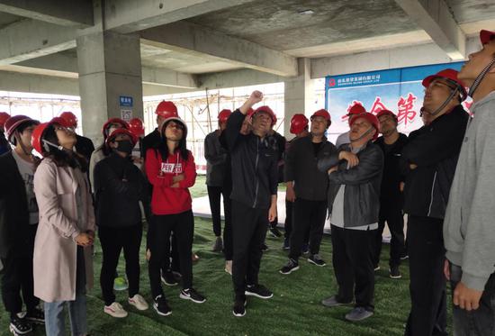 德州职业技术学院系部师生在德建技术专家的引领下现场参观了五层施工现场、三层独立支撑架体和一楼样板间。同时,在部分装配式预制构件样品现场,专家以理论加实践的方式进行讲解,并就师生提出的关于装配式建筑产业园构件生产区、吊装施工区、灌浆实训区的问题进行了认真的回答。