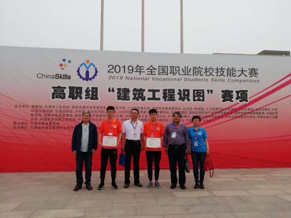 5月10日至12日,2019年全国职业院校技能大赛高职组“建筑工程识图”赛项在天津城市建设管理职业技术学院举行,来自全国31个省、自治区、直辖市的105所职业院校共210名选手参加比赛。由德州职业学院2017级工程造价专业学生孙乐旗、王新阔组成的山东四队,在指导教师司振民、姚玲云的悉心指导下,沉着冷静,稳定发挥,荣获国赛银牌。