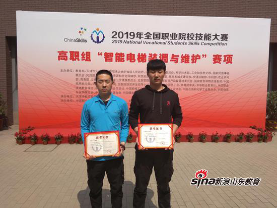 5月6日至9日,2019年全国职业院校技能大赛高职组“智能电梯装调与维护”赛项在天津轻工职业技术学院举行,来自全国的28个省、自治区、直辖市的91支代表队(含中德应用技术大学的1支留学生代表队)182名选手参加比赛。德州职院参赛队由电气工程系机电一体化学生杨迎鑫、秦晓帅组成的山东一队在指导教师柴远斌、李志鹏的悉心指导下,克服困难,顶住压力,取得了国赛银奖的好成绩。