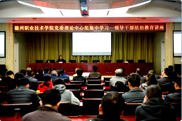 为提升依法治校、依法执教能力,建设平安和谐校园,保障省优质高职院校建设高质量扎实推进,4月2日,德州职业技术学院通过党委理论中心组学习的方式,专题举办了领导干部法制教育讲座。学校领导班子成员、副科级以上干部参加讲座,德州市中级人民法院刑事审判庭第三庭副庭长李敏应邀作专题讲座,校党委委员、宣传部部长周吉星主持讲座。