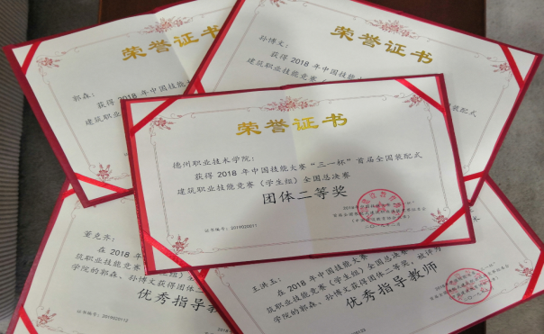 2019年2月27日-28日,由中国建设教育协会、中国就业培训技术指导中心、住房和城乡建设部科技与产业发展中心主办的2018年中国技能大赛“三一杯”首届全国装配式建筑职业技能竞(学生组)全国总决赛赛暨在济南工程职业技术学院举行。本次学生组比赛共有来自全国各地的职业院校54支代表队,108名选手参赛。德州职业技术学院建筑园林工程系选手郭森、孙博文在指导教师董克齐、王洪玉的悉心指导下沉着应战,取得团体二等奖、优秀个人奖的好成绩。