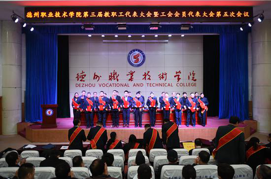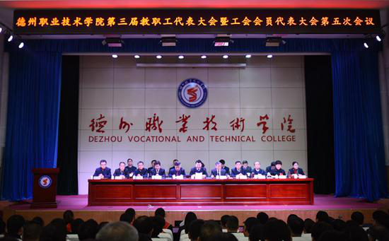 2019年2月28日-3月1日,德州职业技术学院三届五次教职工代表大会暨工会会员代表大会隆重召开。校党委书记樊兆杰,院长张同光出席会议,学校领导班子成员、双代会代表、全体教职工齐聚一堂,总结过去一年的工作成绩,展望2019年学校发展。