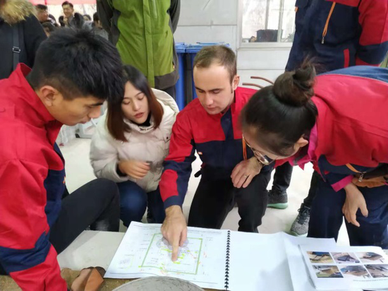 12月4日至8日,法方两名教师组成团队,全程示范并完美实现了一组园林世赛项目,项目包含景墙、水景、园林道路、植物等园林要素。即使严寒飘雪、寒风凛冽,也挡不住法方教师对园林专业的热爱、对完美结果的追求、对交流任务的负责。12月5日上午,德州迎来了本年度第一场雪,一阵阵凉飕飕的风不停地吹向施工区域,为了更好地控制项目进度,高质量完成园林施工项目,整个施工过程忽视德州的初雪,全心付出完成园林施工项目。整个训练过程,没有休息,没有停顿,只有不间断的为中方两组训练团队做出精准性技术训练。落叶伴着秋天离去,他们便是飘雪带来的冬的生机,严寒挡不住他们的热情,才华在园林施工训练场洋溢。
