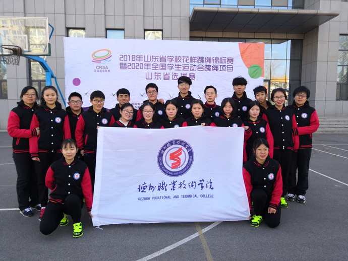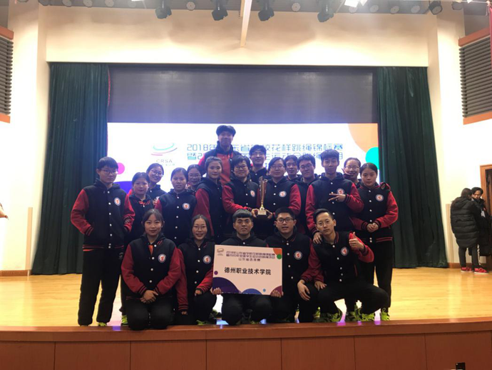 在刚刚结束的由山东省学校体育协会、山东省体操运动管理中心主办、山东师范大学附属中学承办、山东省学校体育协会两操分会协办的2018年山东省学校花样跳绳锦标赛暨2020年全国学生运动会跳绳项目山东选拔赛中,德州职业技术学院教练员侯歆、李潇老师带领18名队员,经过三天的努力拼搏,获得个人花样女子组、混合车轮跳花样、3分钟单摇跳、混合八人集体自编赛、混合30秒交互绳单摇跳等28个项目中的15项冠军, 5项亚军,5项季军,三项第四名,四项第五名,一项第六名,一项第八名,以总分130分的优异成绩获得大学普通院校组团体总分第一名。这是继2017年山东跳绳锦标赛团体总分第一名之后又取得的一项优异成绩。