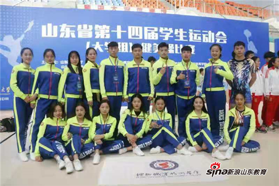 在刚刚结束的山东省第十四届大学生运动会健美操比赛中,德州职业技术学院健美操队共获得6金1银3铜,获得团体总分第一名,并荣获体育道德风尚奖。