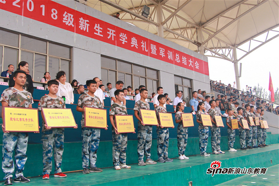 开学典礼后,郭士武同志宣布:德州职业技术学院2018级新生军训总结汇演开始。