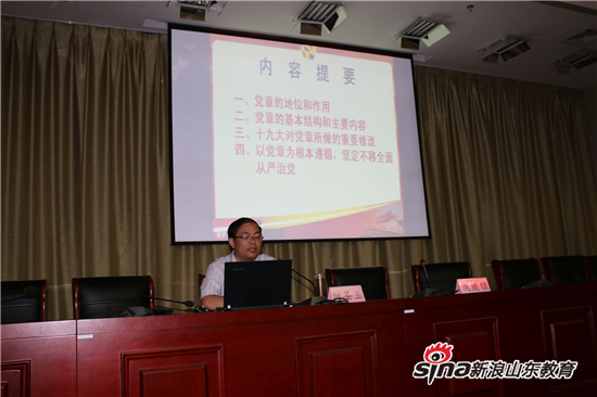 时圣玉教授做了题为《认真学习党章,严格遵守党章,做新时代合格党员》的辅导报告,共讲了四个方面:一是党章的地位和作用;二是党章的基本结构和主要内容;三是十九大对党章所做的重要修改;四是以党章为根本遵循,坚定不移全面从严治党。报告高屋建瓴,深入浅出,有很强的针对性,对在座的各位党员、基层干部学历教育学员掌握党章知识,领会党章精髓有着直接的指导作用。