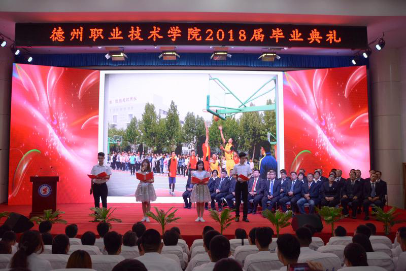 7月6日,德州职业技术学院举行2018届学生毕业典礼,学校班子成员,各部门主要负责人,教师代表,2018届毕业生代表及在校学生代表近500人参加毕业典礼。