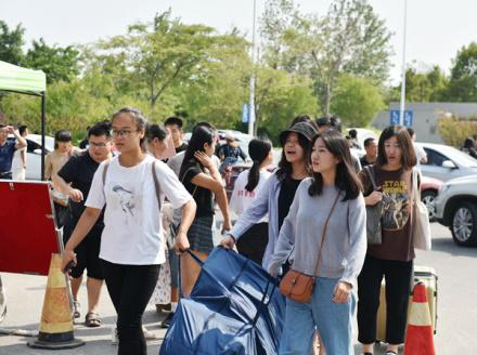 经过精心装点的校园,彩旗飘扬,大型拱门伫立在学生生活区大门口,张开怀抱,迎接来自四面八方的莘莘学子。学校划定了报到车辆停车区域,安排专人指挥。
