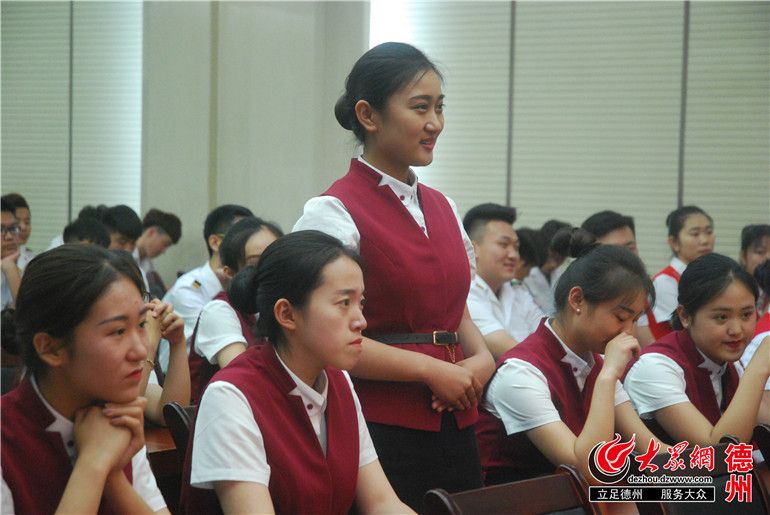 在多功能厅,德州职业技术学院航空学院学生正在专心聆听专业知识讲座