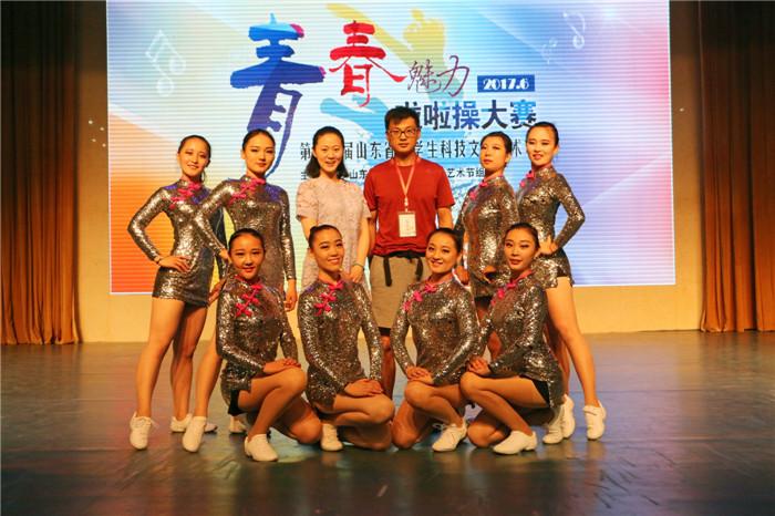本次大赛由山东省大学生科技文化艺术节组委会主办,共青团烟台市委、烟台市学生联合会、烟台汽车工程职业学院承办。德州职院爵士啦啦操代表队得到校学生处(团委)和基础部(思政部、家政服务系)领导的大力支持,八名选手刻苦训练,齐心合力,配合默契,动作青春洋溢、活力四射,极具舞台感染力和表现力,以扎实的功底、多样的队形赢得在场观众的热烈欢呼。