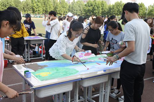 日前,德州职业技术学院田径运动场内,由基础部(思政部、家政服务系)学前教育专业“绿色心情心理社团——心理手绘报部”发起、心理咨询师杨金莲为总策划、基础部(思政部、家政服务系)学生科主办的主题为“彩绘人生·健康前行”的学生心理绘画大赛在体育场举行。团总支书记田树军、学生处副处长范轶亲临现场观看。